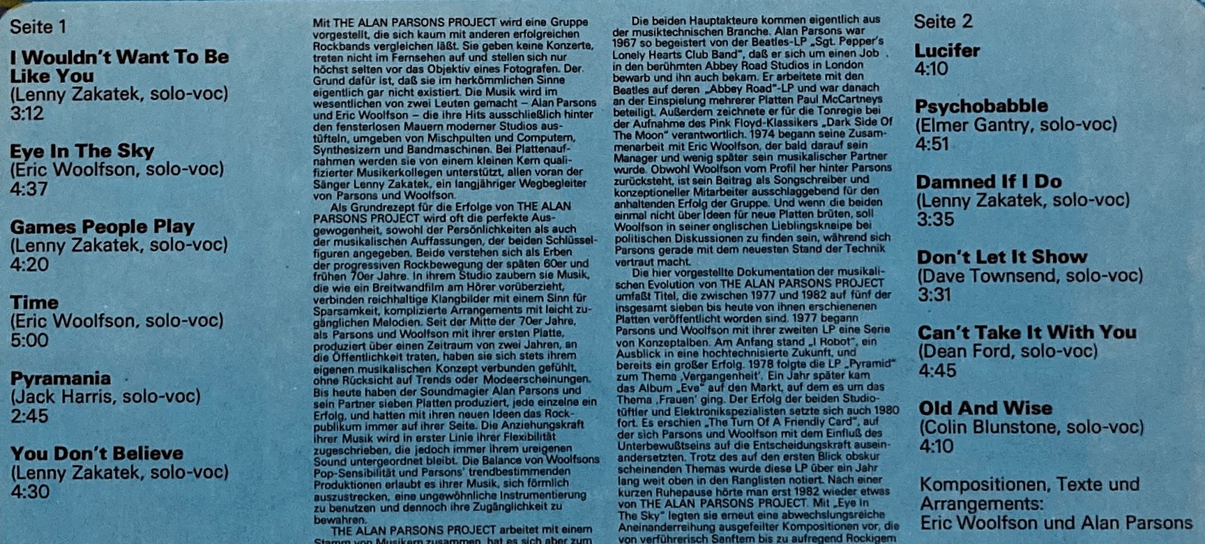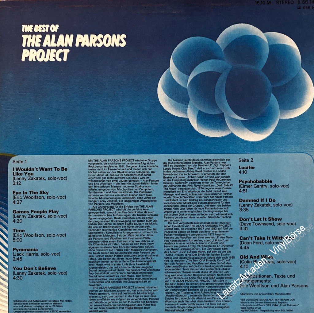 Hallo liebe Vinyl-Freunde,wir bieten euch hier ein paar Stücke aus unserem Plattenladen an. Es handelt sich dabei ausschließlich um Originalware bekannter Label aus den 60er, 70er und 80er Jahren. LP - Amiga ( 856140 ) - The Alan Parsons Project - The Best ofKlicken Sie auf das Bild um das Cover mi ...Weiterlesen