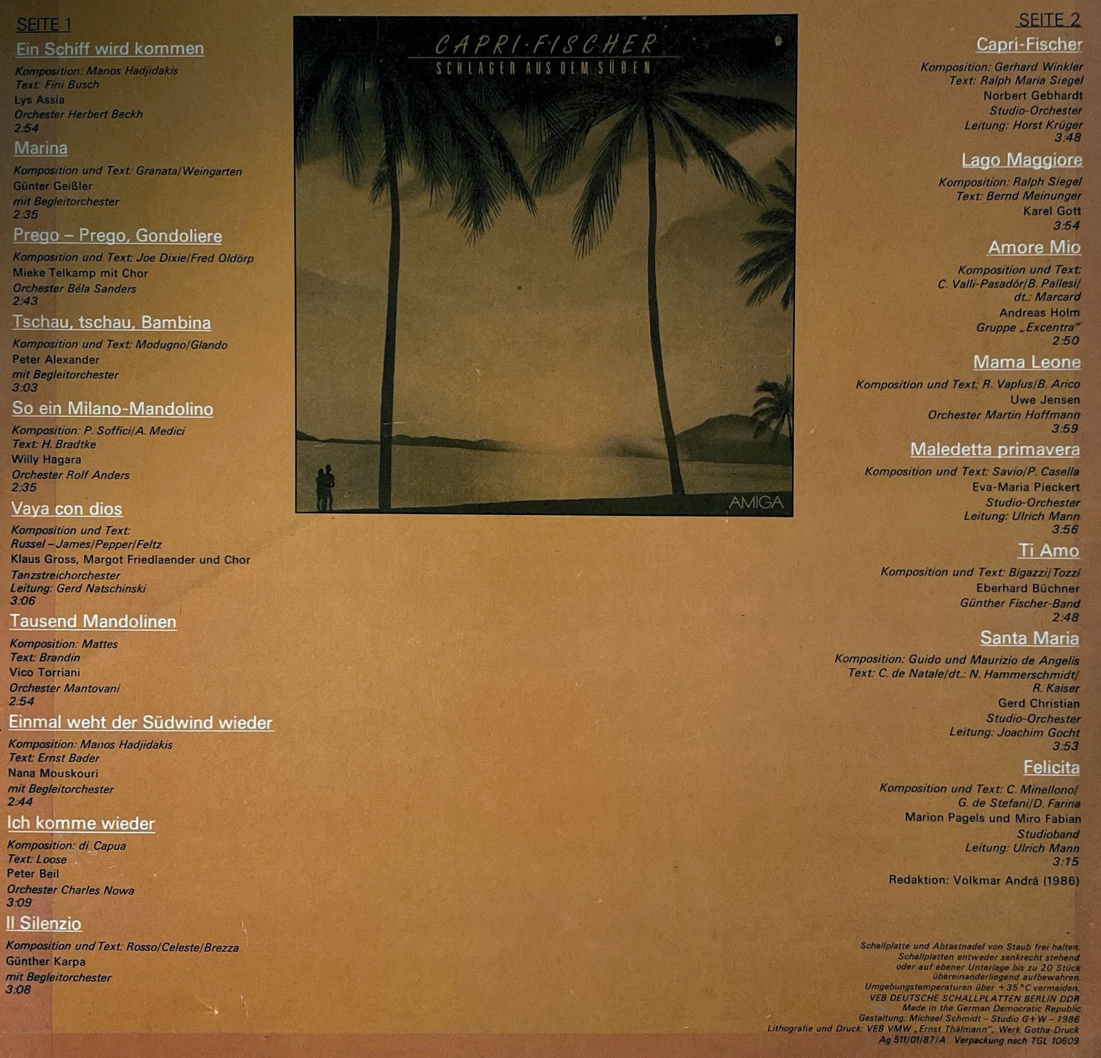 LP - Amiga ( 856185 ) - Capri Fischer - Schlager aus dem Süden