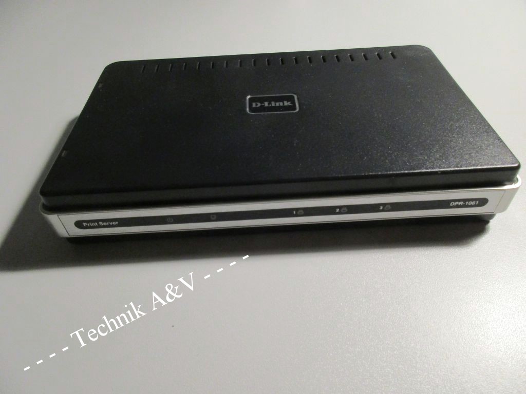 Druckerserver von D-Link mit der Bezeichnung DPR-1061 mit Netzteil.