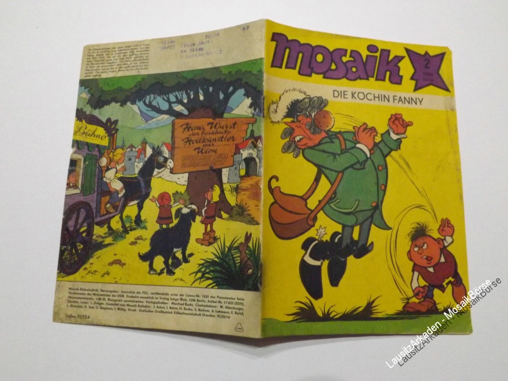 Liebe Mosaikfreunde,wir verkaufen hier das original MosaikHeft 02 von 1980 - Die Köchin FannyArtikelnummer : 25000403in Zustand : 2.6 / Z5 Bitte beachten Sie unsere Informationen zur Bewertung der Hefte !DeckblattAbostempel : 2 = jaPapier : 4 = Deckblatt lose und/oder stark fleckig, bemalt, bes ...Weiterlesen