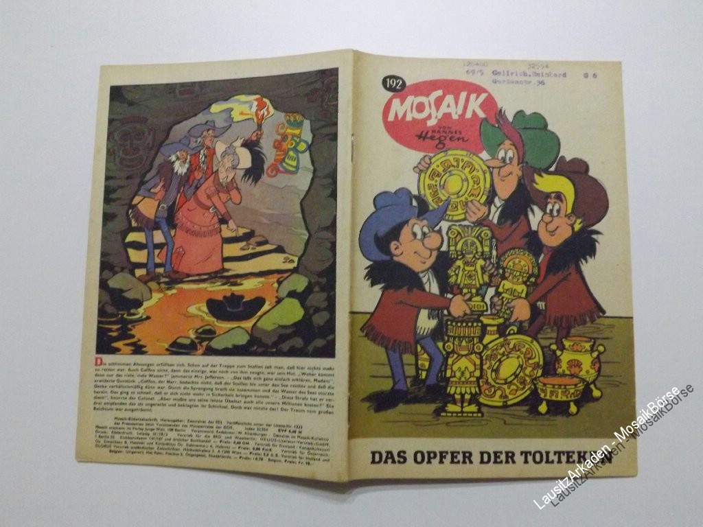 Liebe Mosaikfreunde,wir verkaufen hier das original MosaikHeft 192 - Das Opfer der ToltekenArtikelnummer : 25000564in Zustand : 2.0 / Z3 Bitte beachten Sie unsere Informationen zur Bewertung der Hefte !DeckblattAbostempel : 2 = jaPapier : 2 = Geringe altersbedingte Papierverfärbungen durch Licht ...Weiterlesen