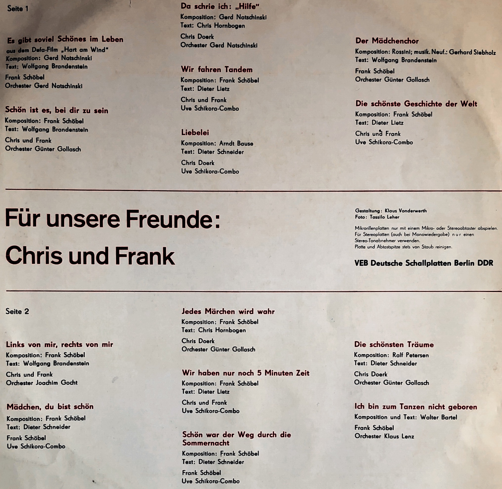 LP - Amiga ( 855246 ) - Chris Doerk und Frank Schöbel - Für unsere Freunde