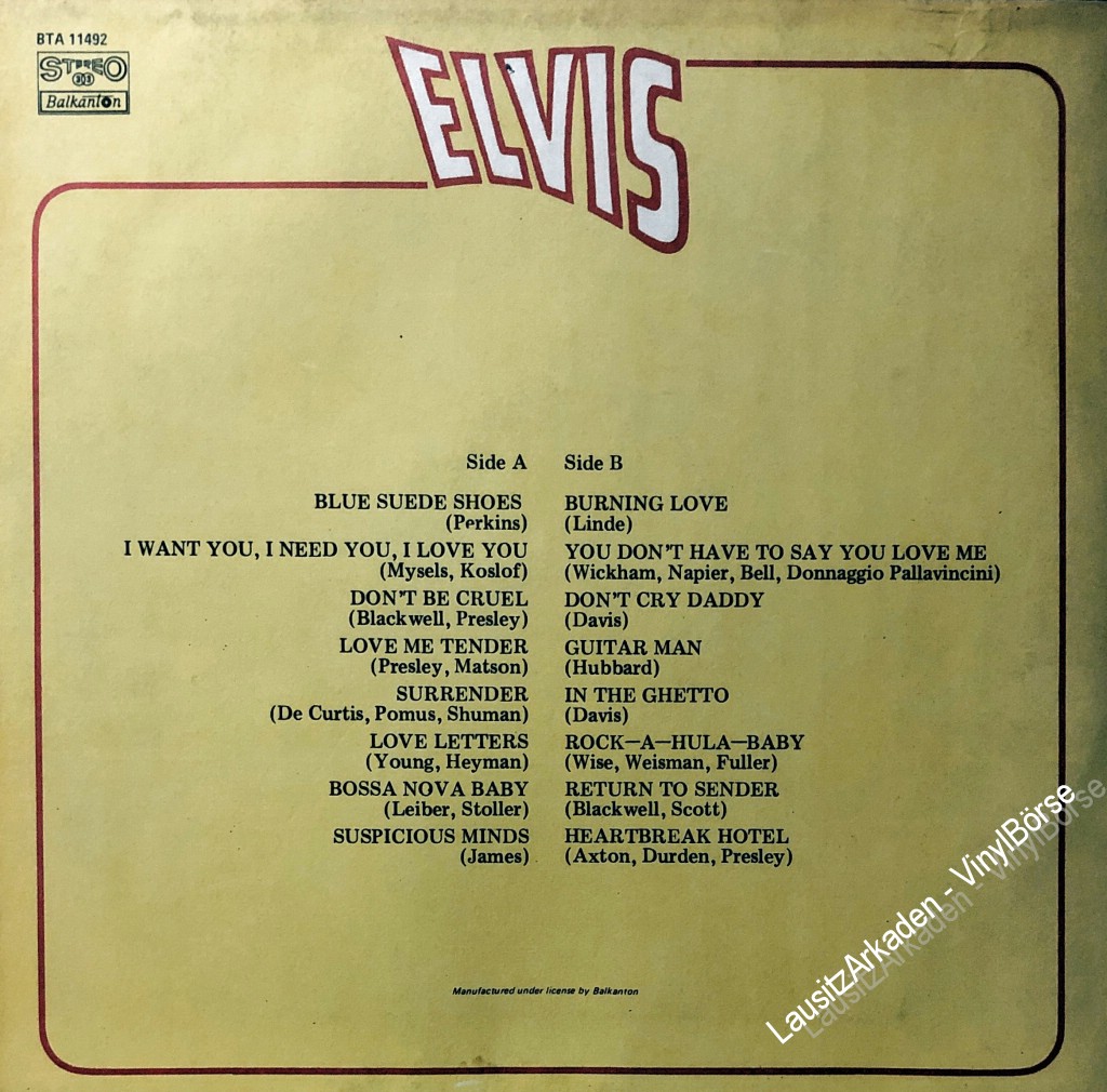 LP - Balkanton ( BTA11492 ) - Elvis Presley - Elvis