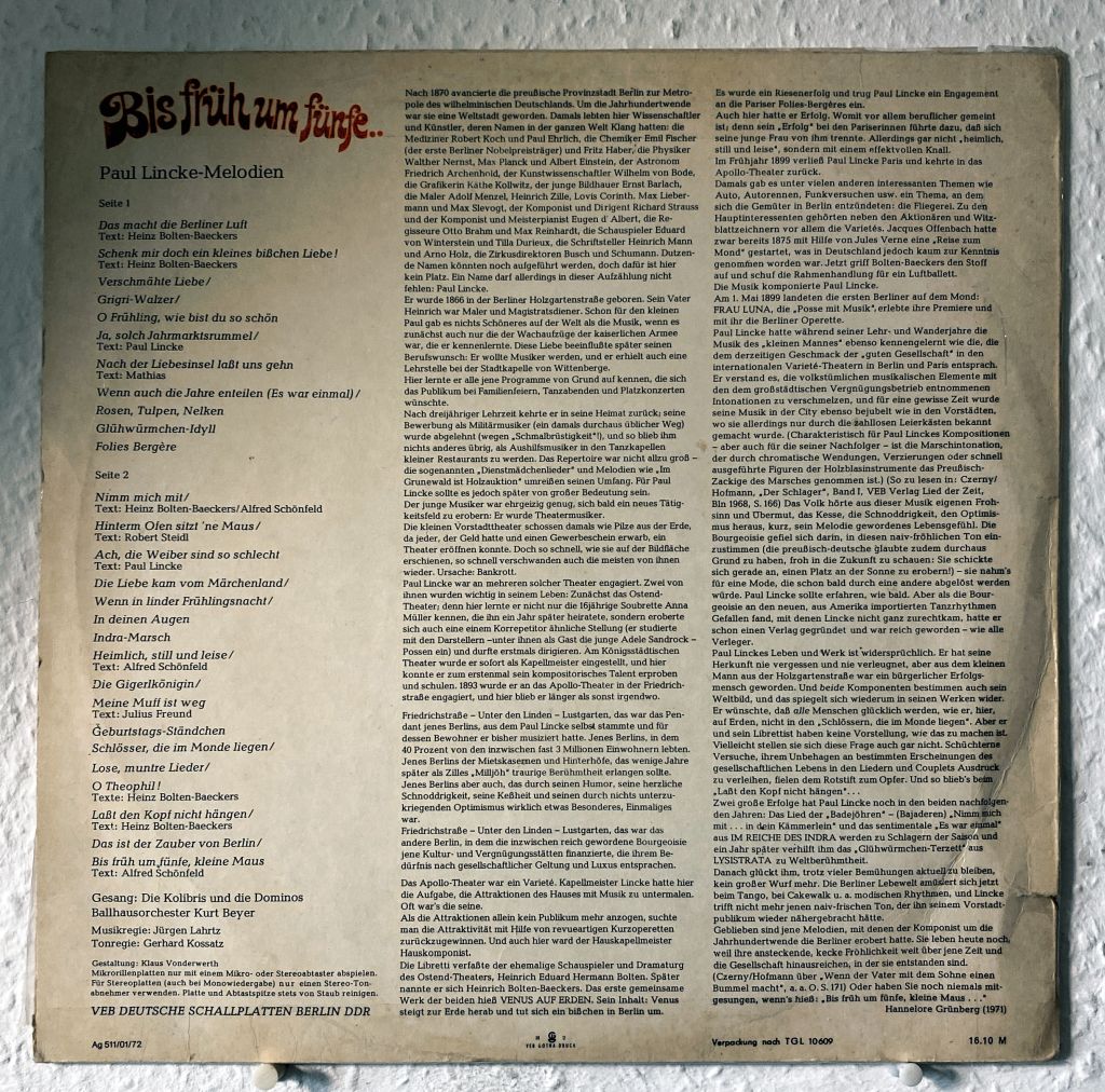 LP - Amiga ( 855306 ) - Bis früh um fünfe - Paul Lincke Melodien