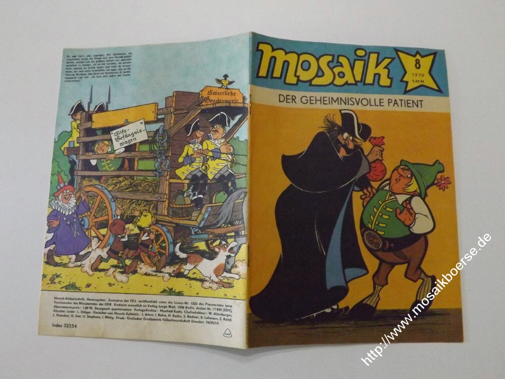 Liebe Mosaikfreunde,wir verkaufen hier das original MosaikHeft 08 von 1979 - Der geheimnisvolle PatientArtikelnummer : 25000723in Zustand : 1.9 / Z3 Bitte beachten Sie unsere Informationen zur Bewertung der Hefte !DeckblattAbostempel : 1 = neinPapier : 2 = Geringe altersbedingte Papierverfärbung ...Weiterlesen