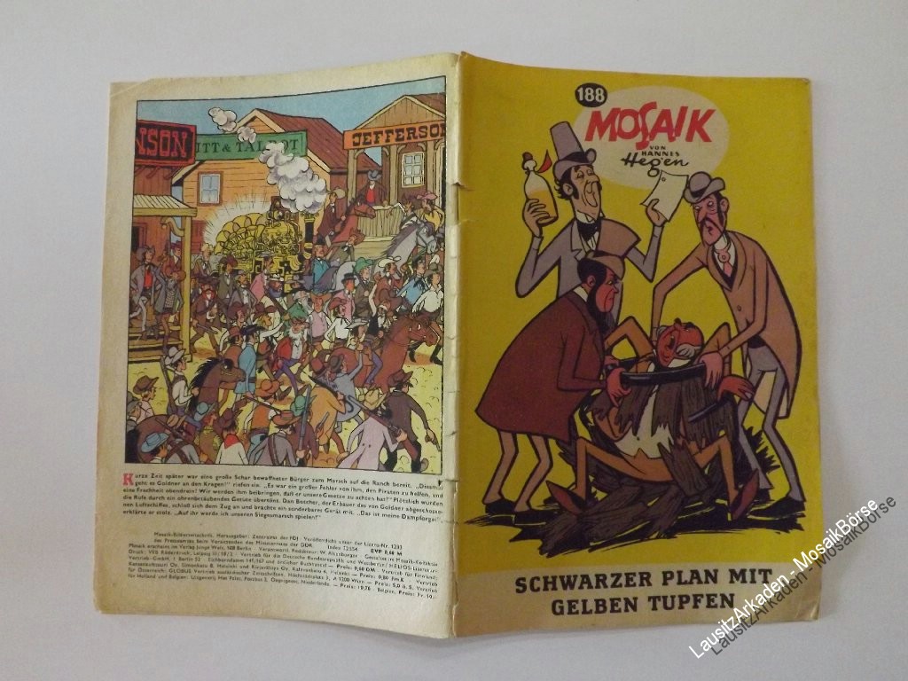 Liebe Mosaikfreunde,wir verkaufen hier das original MosaikHeft 188 - Schwarzer Plan mit gelben TupfenArtikelnummer : 25000921in Zustand : 2.2 / Z4 Bitte beachten Sie unsere Informationen zur Bewertung der Hefte !DeckblattAbostempel : 1 = neinPapier : 2 = Geringe altersbedingte Papierverfärbungen ...Weiterlesen