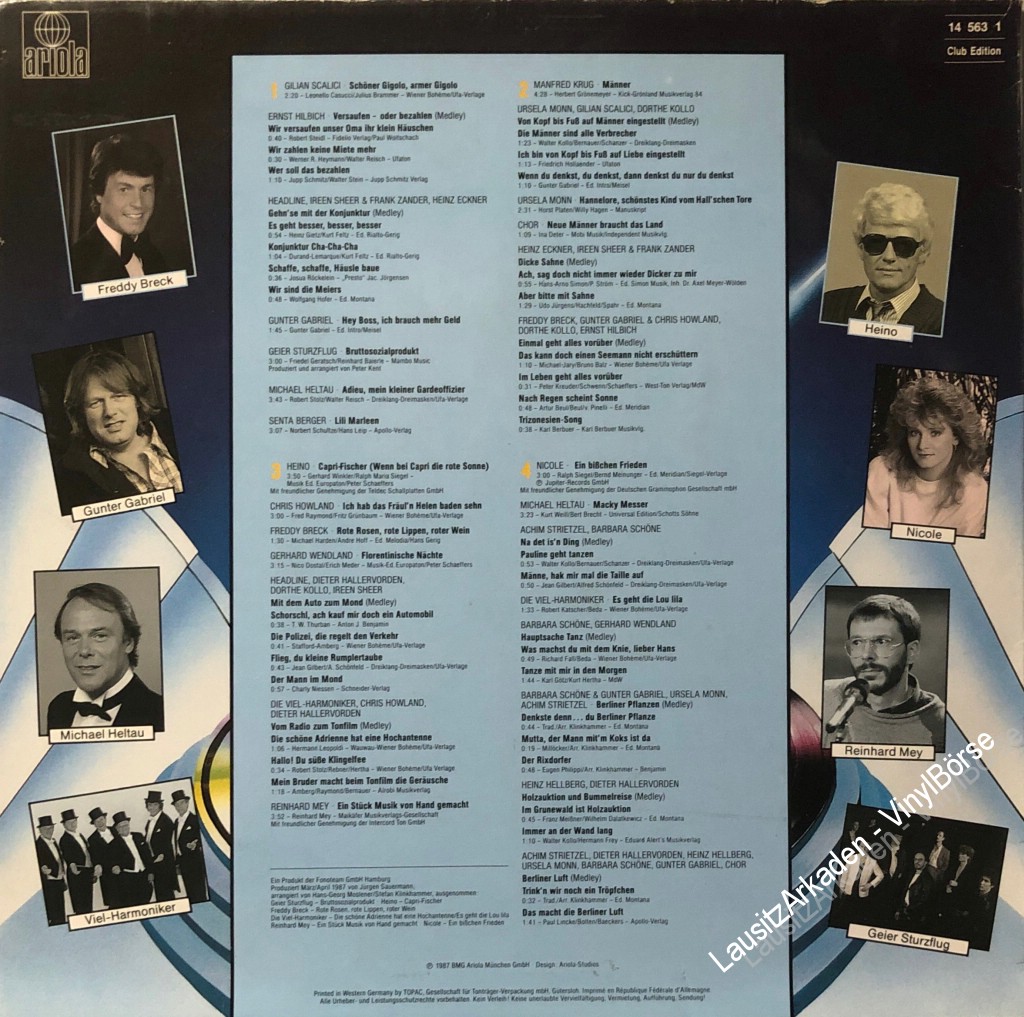 Hallo liebe Vinyl-Freunde,wir bieten euch hier ein paar Stücke aus unserem Plattenladen an. Es handelt sich dabei ausschließlich um Originalware bekannter Label aus den 60er, 70er und 80er Jahren. Doppel LP - ariola ( 145631 ) - Hits des JahrhundertsKlicken Sie auf das Bild um das Cover mit der Tit ...Weiterlesen