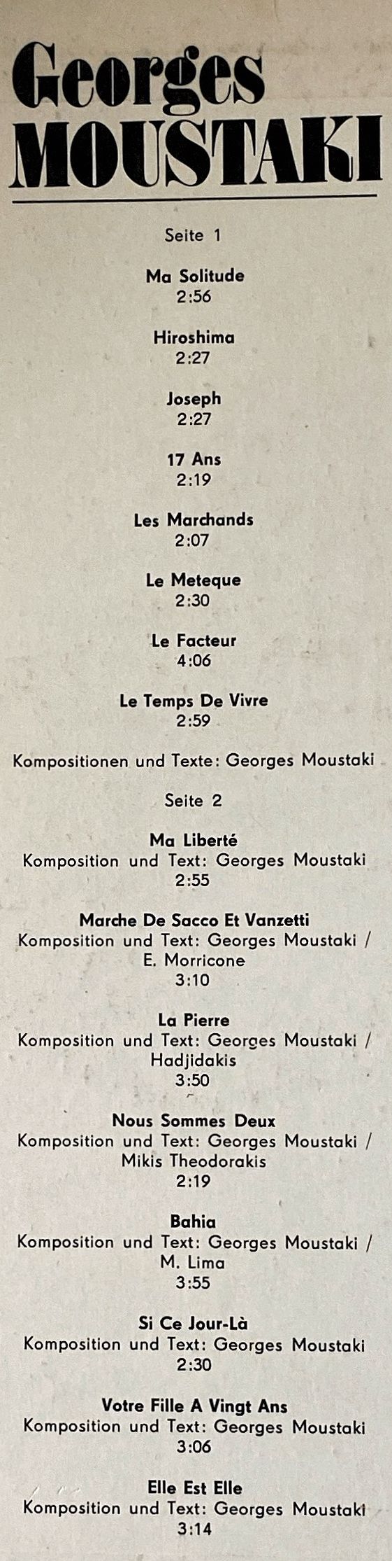 Hallo liebe Vinyl-Freunde,wir bieten euch hier ein paar Stücke aus unserem Plattenladen an. Es handelt sich dabei ausschließlich um Originalware bekannter Label aus den 60er, 70er und 80er Jahren. LP - Amiga ( 855743 ) - Georges Moustaki - Georges MoustakiKlicken Sie auf das Bild um das Cover mit d ...Weiterlesen
