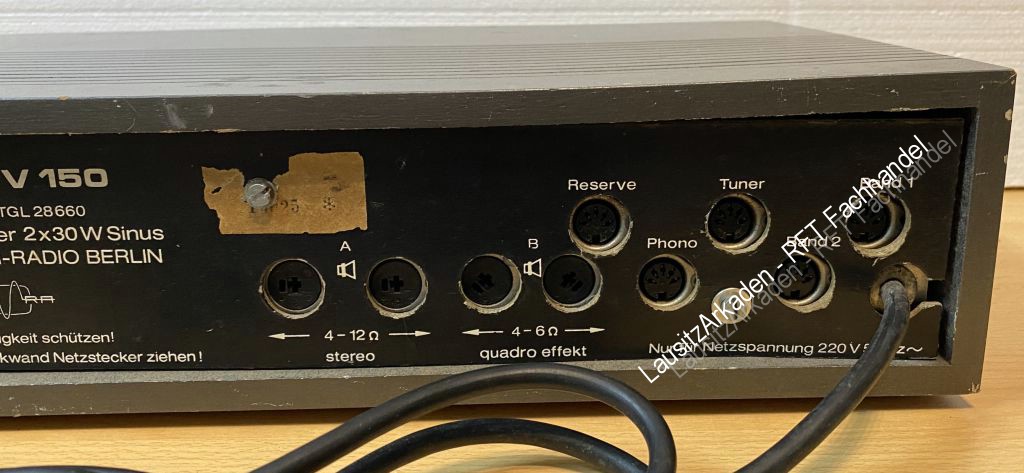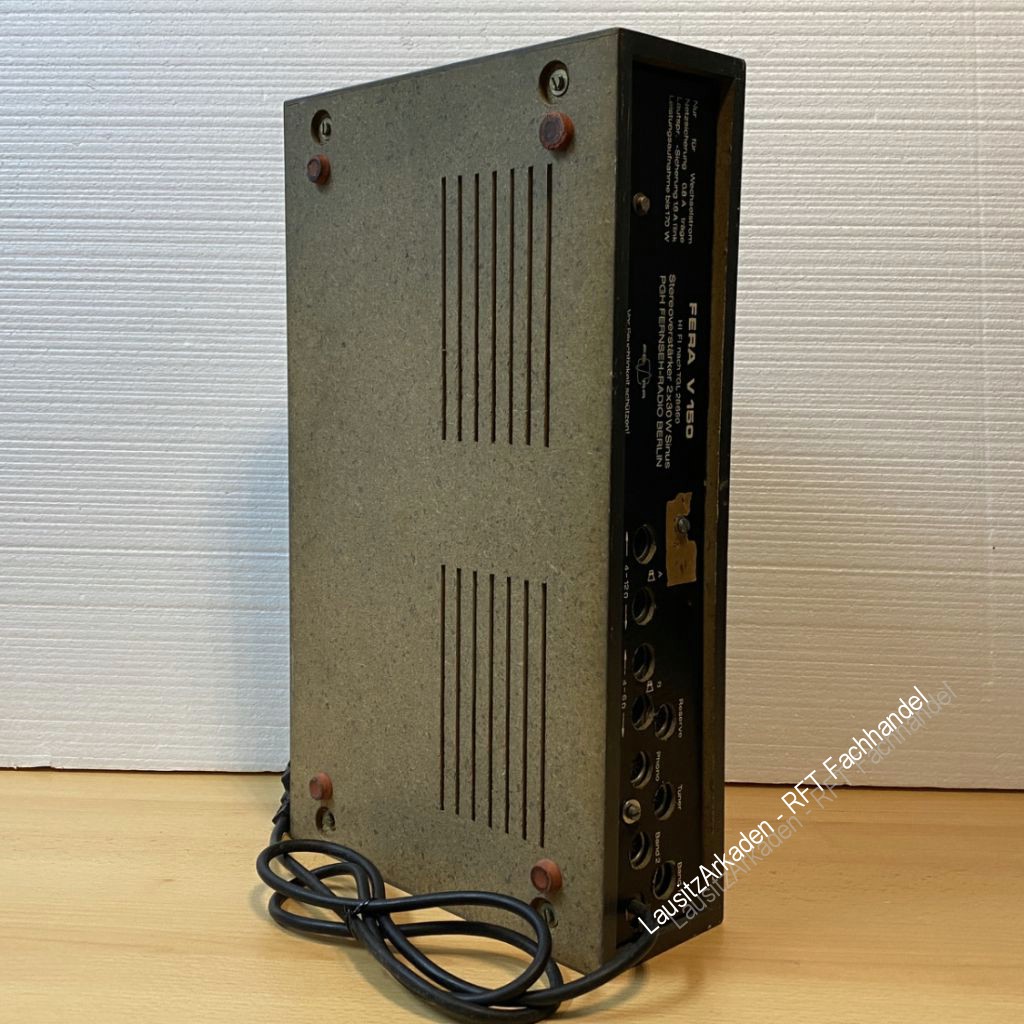 Der HiFi-Verstärker V 150 ist technisch gesehen der Nachfolger des HiFi 50 und ein Bestandteil der Komponentenanlage Fera 150 aus der PGH Fernseh-Radio Berlin.