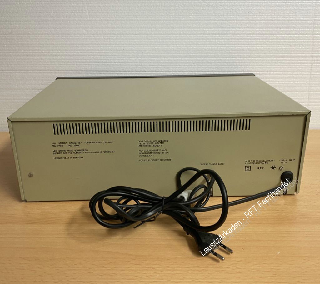 | Sicherungshalter gereinigt. Sicherungen ersetzt. Alle Riemen erneuert. Getestete Funktionen : - Kassettenfach öffnen = i.O. - Wiedergabe = i.O. - Vor- und Rücklauf = i.O. - Pause und Stop = i.O. - Banzählwerk = i.O. -Bandzählwerk zurücksetzen = i.O. - Levelanzeige rechts und links = i.O. Aufnahmefunktion nicht getestet. Kopfhörerausgang nicht getestet. Alle Regler und Knöpfe lassen sich schalten/drehen/schieben. Hellgrauer Gehäusedeckel und Rückseite, braune Frontblende. Der DIN-Stecker wurde mal getauscht (sihe Bilder). Optisch mit Gebrauchsspuren (siehe Bilder). |