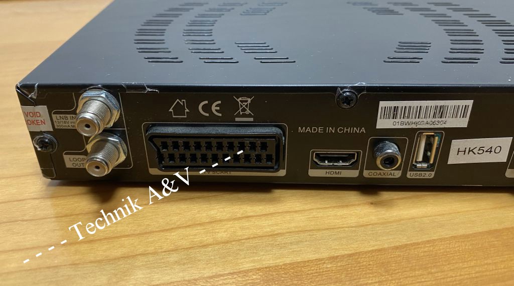 - Anschlüsse: HDMI, Scart, USB2.0, digital audio out coaxial, LNB IN, LOOP OUT