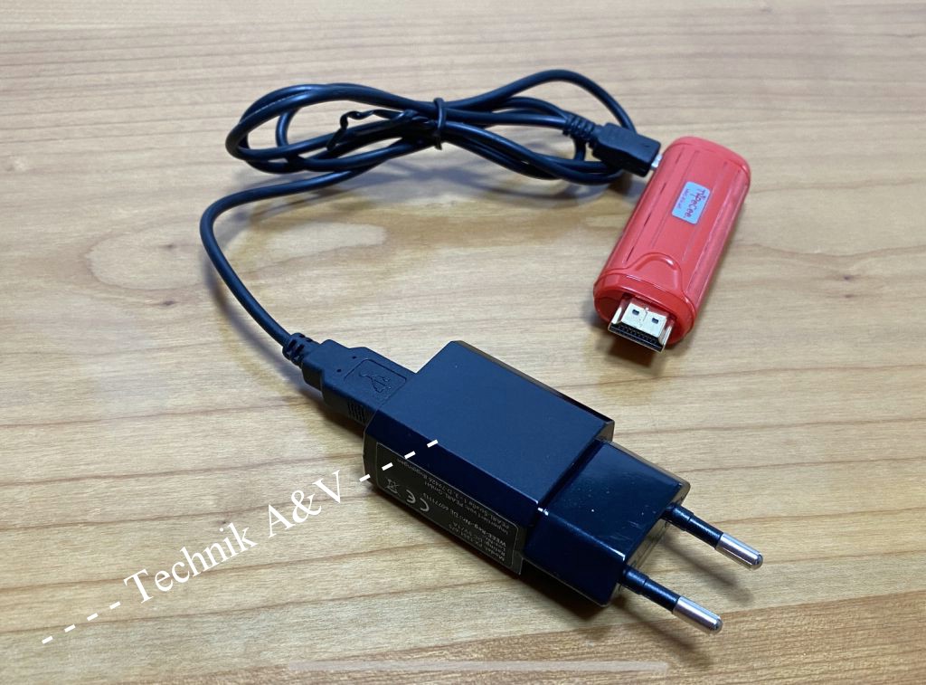 Anschluss über HDMI, Stromversorgung über Netzteil an USB-Port.