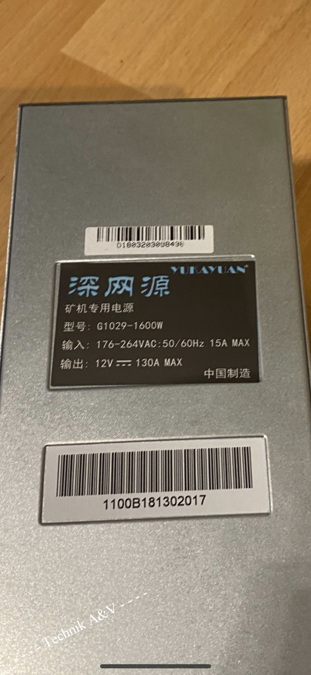 Antminer T9+ mit 1600 Watt Mining Netzteil.