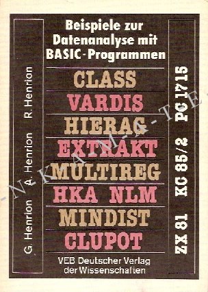 Datenanalyse, Clusteranalyse, Komonenetenanalyse, Klassifizierungsmethoden, Anwendungsbeispiele ...