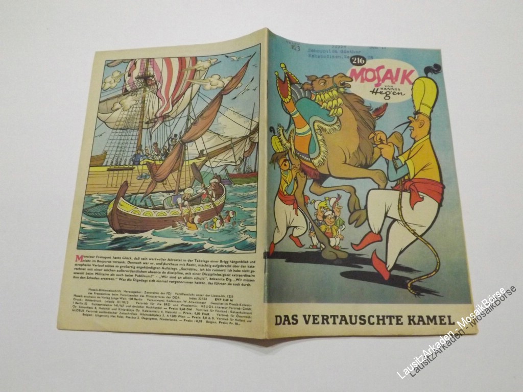 Liebe Mosaikfreunde,wir verkaufen hier das original MosaikHeft 216 - Das vertauschte KamelArtikelnummer : 25000045in Zustand : 1.8 / Z3 Bitte beachten Sie unsere Informationen zur Bewertung der Hefte !DeckblattAbostempel : 2 = jaPapier : 2 = Geringe altersbedingte Papierverfärbungen durch Lichte ...Weiterlesen