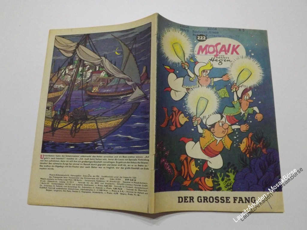 Liebe Mosaikfreunde,wir verkaufen hier das original MosaikHeft 222 - Der große FangArtikelnummer : 25000146in Zustand : 1.9 / Z3 Bitte beachten Sie unsere Informationen zur Bewertung der Hefte !DeckblattAbostempel : 2 = jaPapier : 4 = Deckblatt lose und/oder stark fleckig, bemalt, beschrieben, w ...Weiterlesen