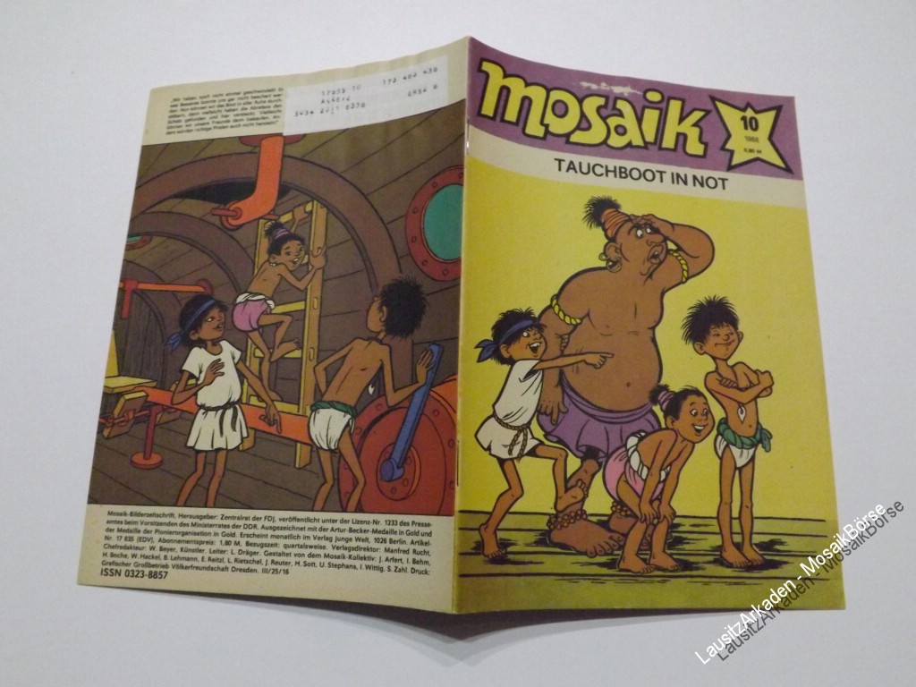 Liebe Mosaikfreunde,wir verkaufen hier das original MosaikHeft 10 von 1988 - Tauchboot in NotArtikelnummer : 25000341in Zustand : 1.6 / Z3 Bitte beachten Sie unsere Informationen zur Bewertung der Hefte !DeckblattAbostempel : 2 = jaPapier : 3 = Starke altersbedingte Papierverfärbungen durch Lic ...Weiterlesen