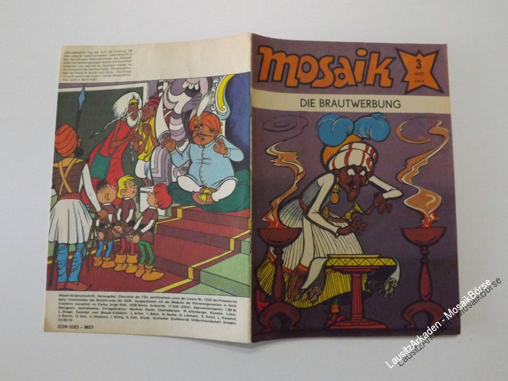Liebe Mosaikfreunde,wir verkaufen hier das original MosaikHeft 03 von 1985 - Die BrautwerbungArtikelnummer : 25000648in Zustand : 1.6 / Z3 Bitte beachten Sie unsere Informationen zur Bewertung der Hefte !DeckblattAbostempel : 1 = neinPapier : 2 = Geringe altersbedingte Papierverfärbungen durch L ...Weiterlesen