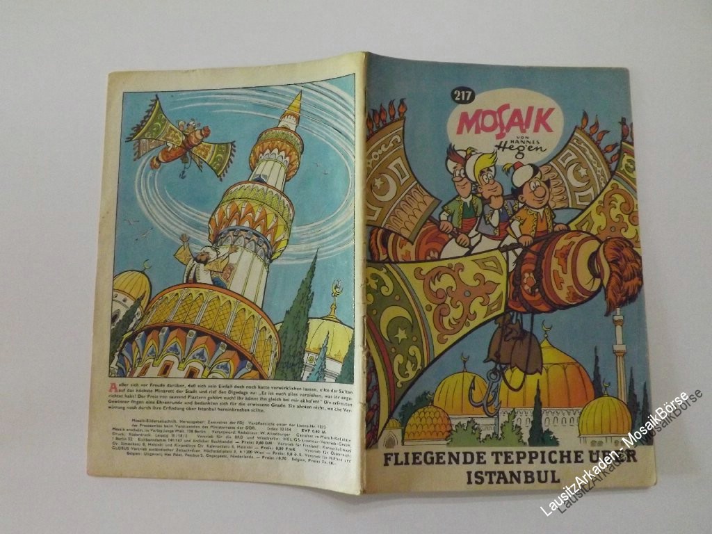 Liebe Mosaikfreunde,wir verkaufen hier das original MosaikHeft 217 - Fliegende Teppiche über IstanbulArtikelnummer : 25000940in Zustand : 2.2 / Z4 Bitte beachten Sie unsere Informationen zur Bewertung der Hefte !DeckblattAbostempel : 1 = neinPapier : 3 = Starke altersbedingte Papierverfärbungen ...Weiterlesen