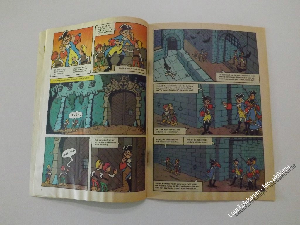 |   | | Deckblatt | | | | Abostempel : | 1 | = nein | |   | 2 | = ja | | Papier : | 1 | = Keine Papierverfärbung, keine Flecken, nicht bemalt oder beschrieben | |   | 2 | = Geringe altersbedingte Papierverfärbungen durch Lichteinstrahlung | | 3 | = Starke altersbedingte Papierverfärbungen durch Lichteinstrahlung | | 4 | = Deckblatt lose und/oder stark fleckig, bemalt, beschrieben, wellig … | | Einrisse : | 1 | = Keine Einrisse |   | 2 | = Geringe Einrisse auf Vorder- und/oder Rückseite | | 3 | = Starke Einrisse auf Vorder- und/oder Rückseite | |   | | Heftrücken | | | | Abrieb : | 1 | = Kein Abrieb | | 2 | = Geringer Abrieb | | 3 | = Starker Abrieb | | Klammerung : | 1 | = Feste Klammerung, Kein Rost | | 2 | = Feste Klammerung, Klammern rostig | | 3 | = Lose Klammerung und/oder Fehlende Klammern | | Einrisse : | 1 | = Keine Einrisse | | 2 | = Geringe Einrisse oben und/oder unten die nicht bis zur Klammerung gehen | | 3 | = Starke Einrisse, teilweise bis zur Klammerung | |   | | Innenseiten | | | | Papier : | 1 | = Keine Papierverfärbung | | 2 | = Geringe altersbedingte Papierverfärbungen durch Lichteinstrahlung | | 3 | = Starke altersbedingte Papierverfärbungen durch Lichteinstrahlung | | 4 | = Innenseiten teilweise lose und/oder stark fleckig, bemalt, beschrieben, wellig … | | Einrisse : | 1 | = Keine Einrisse | | 2 | = Geringe Einrisse oben und/oder unten die nicht bis zur Klammerung gehen | | 3 | = Starke Einrisse |