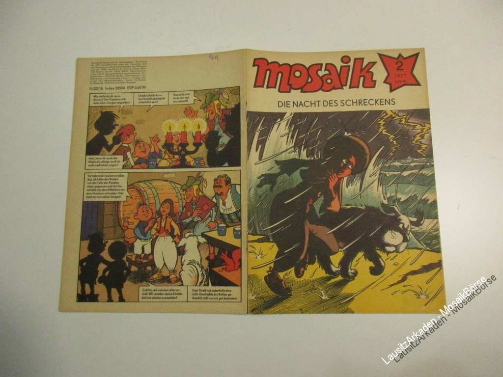 Liebe Mosaikfreunde,wir verkaufen hier das original MosaikHeft 02 von 1977 - Die Nacht des SchreckensArtikelnummer : 25001288in Zustand : 2.2 / Z4 Bitte beachten Sie unsere Informationen zur Bewertung der Hefte !DeckblattAbostempel : 1 = neinPapier : 3 = Starke altersbedingte Papierverfärbungen ...Weiterlesen