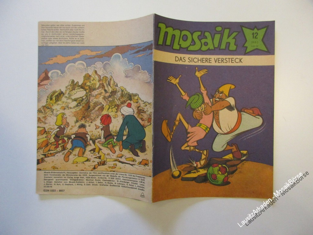 Liebe Mosaikfreunde,wir verkaufen hier das original MosaikHeft 12 von 1983 - Das sichere VersteckArtikelnummer : 25001433in Zustand : 1.4 / Z2 Bitte beachten Sie unsere Informationen zur Bewertung der Hefte !DeckblattAbostempel : 1 = neinPapier : 2 = Geringe altersbedingte Papierverfärbungen dur ...Weiterlesen