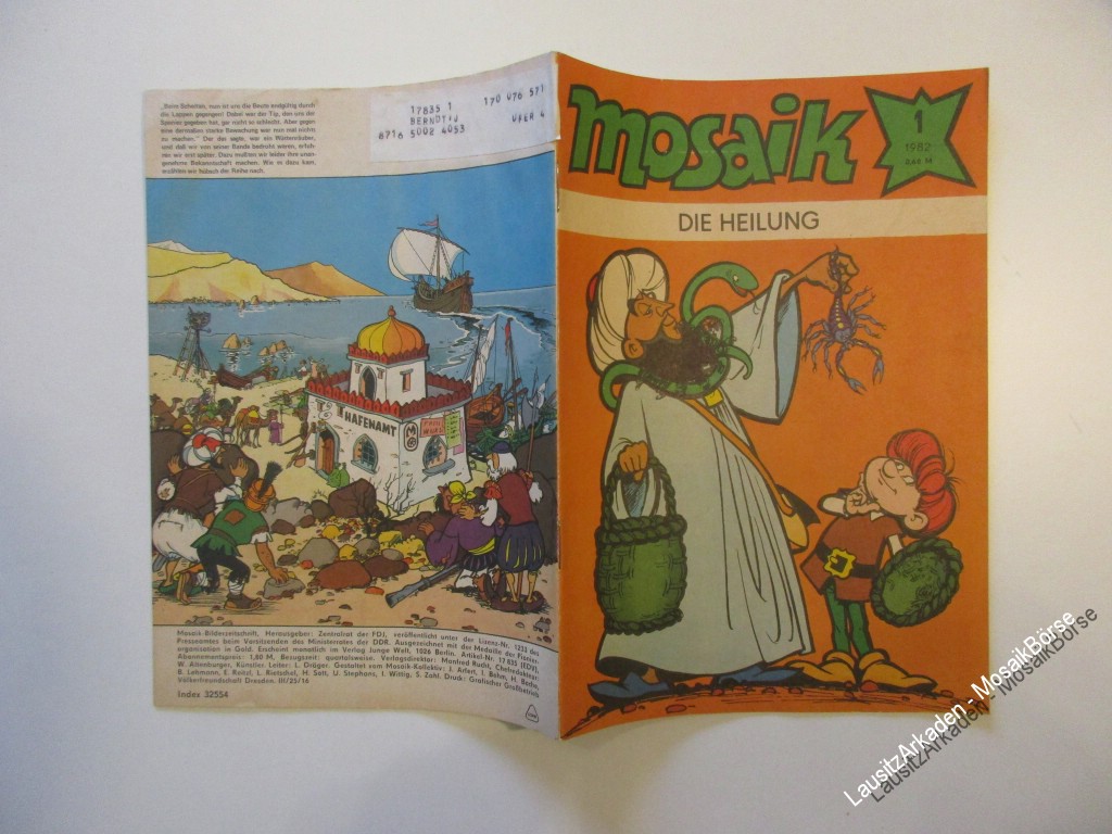 Liebe Mosaikfreunde,wir verkaufen hier das original MosaikHeft 01 von 1982 - Die HeilungArtikelnummer : 25001447in Zustand : 1.5 / Z3 Bitte beachten Sie unsere Informationen zur Bewertung der Hefte !DeckblattAbostempel : 2 = jaPapier : 2 = Geringe altersbedingte Papierverfärbungen durch Lichtein ...Weiterlesen