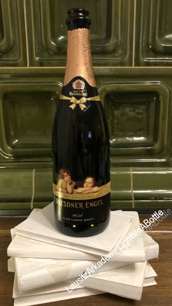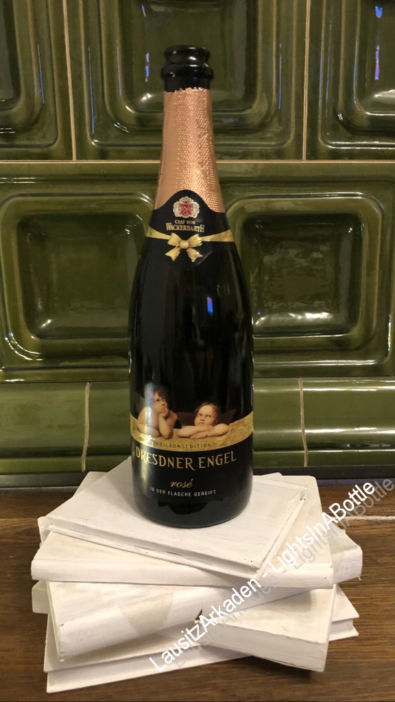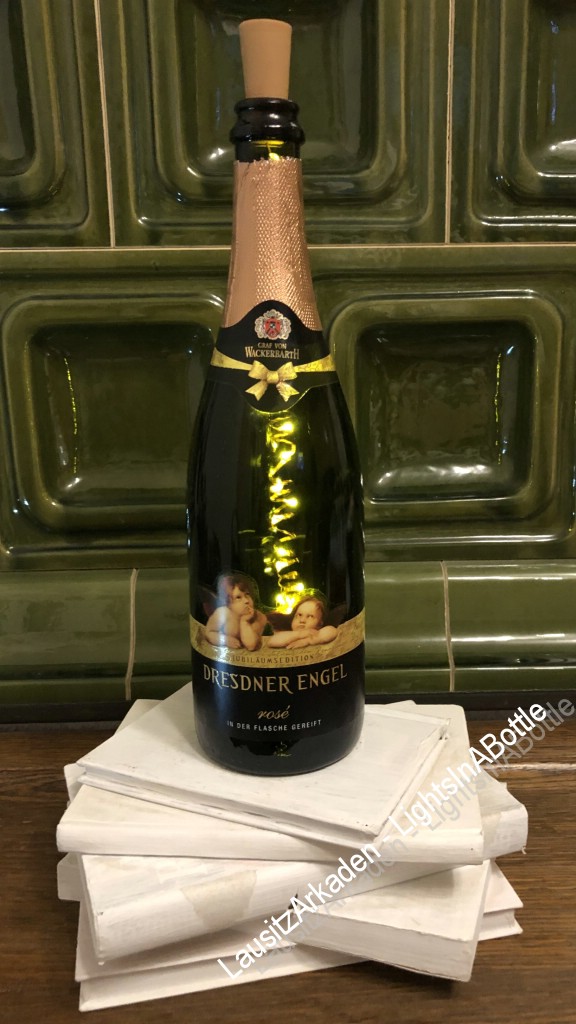 Glasflasche - Schloss Wackerbarth Dresdner Engel - dunkelgrün: Korken mit LED-Lichtern (USB) - keine - Ohne Tubus