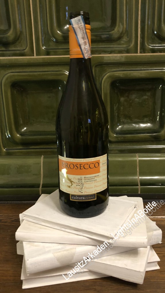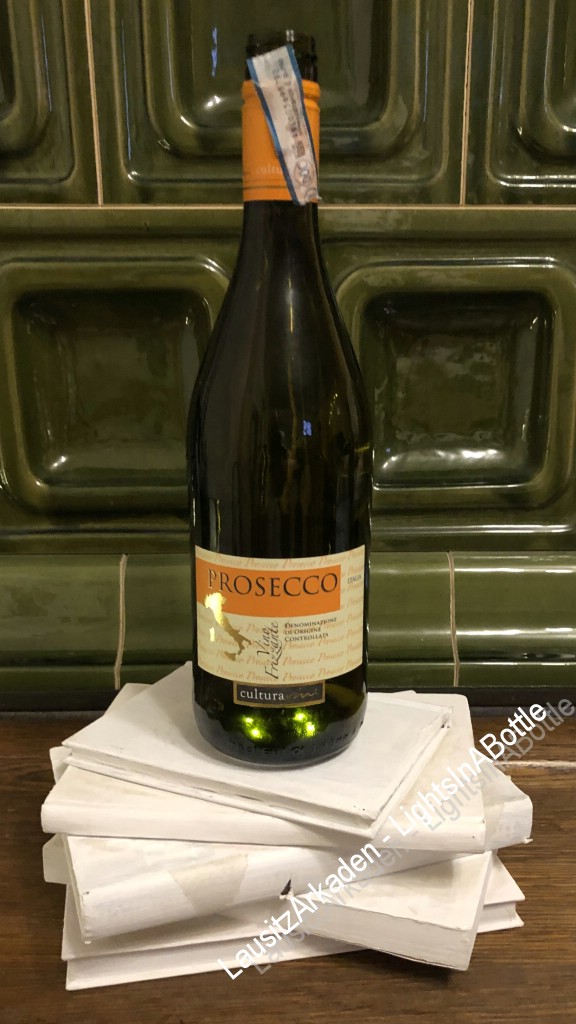Damit Sie sich ein Bild von der Wirkung der unterschiedlichen Beleuchtungsvarianten machen können, haben von jeder Flasche ein Bild mit Beleuchtung vom Flaschenboden und mit der LED-Lichterkette gemacht.