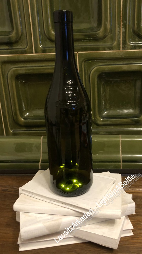 Damit Sie sich ein Bild von der Wirkung der unterschiedlichen Beleuchtungsvarianten machen können, haben von jeder Flasche ein Bild mit Beleuchtung vom Flaschenboden und mit der LED-Lichterkette gemacht.