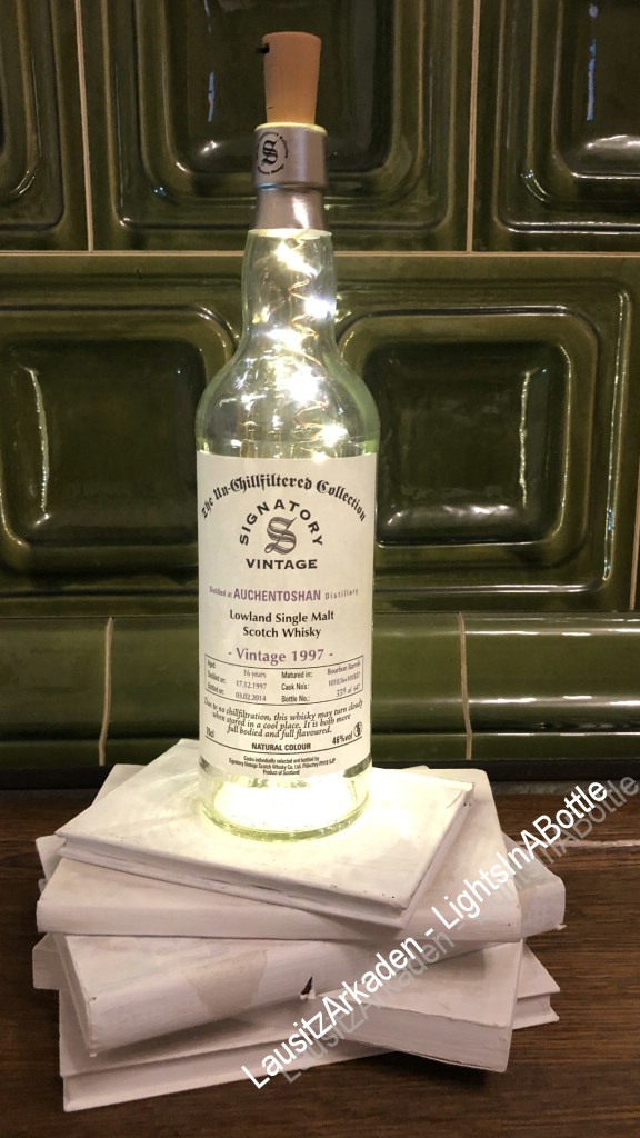 Whiskyflasche - The Un-Chilllfiltred Collection Auchentoshan - klar: Korken mit LED-Lichtern (USB) - grün - Mit Tubus