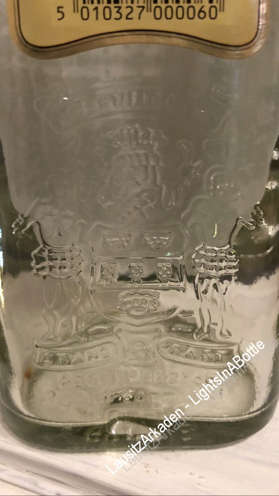 Damit Sie sich ein Bild von der Wirkung der unterschiedlichen Beleuchtungsvarianten machen können, haben von jeder Flasche ein Bild mit Beleuchtung vom Flaschenboden und mit der LED-Lichterkette gemacht.