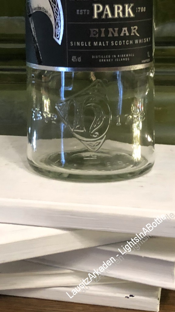 Damit Sie sich ein Bild von der Wirkung der unterschiedlichen Beleuchtungsvarianten machen können, haben von jeder Flasche ein Bild mit Beleuchtung vom Flaschenboden und mit der LED-Lichterkette gemacht.