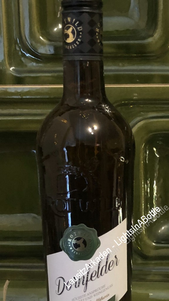 Weinflasche - Dornfelder Rotwild - braun: Korken mit LED-Lichtern (USB) - grün - Ohne Tubus