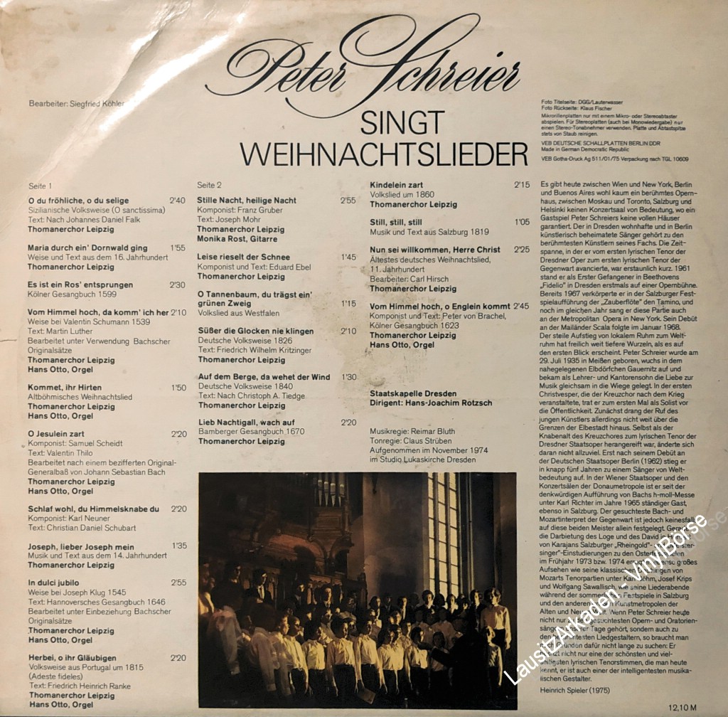Hallo liebe Vinyl-Freunde,wir bieten euch hier ein paar Stücke aus unserem Plattenladen an. Es handelt sich dabei ausschließlich um Originalware bekannter Label aus den 60er, 70er und 80er Jahren. LP - Eterna ( 826697 ) - Peter Schreier singt WeihnachtsliederKlicken Sie auf das Bild um das Cover mi ...Weiterlesen