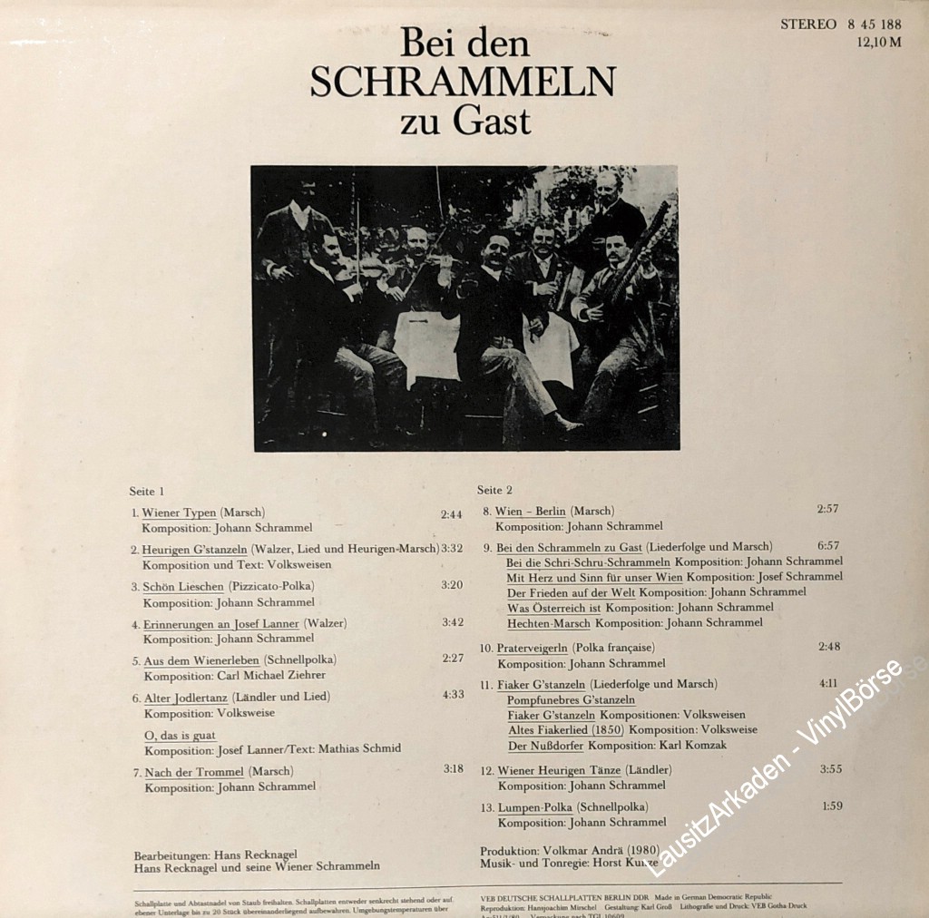 Hallo liebe Vinyl-Freunde,wir bieten euch hier ein paar Stücke aus unserem Plattenladen an. Es handelt sich dabei ausschließlich um Originalware bekannter Label aus den 60er, 70er und 80er Jahren. LP - Amiga ( 845188 ) - Bei den Schrammeln zu GastKlicken Sie auf das Bild um das Cover mit der Titelü ...Weiterlesen