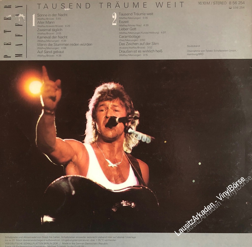 Hallo liebe Vinyl-Freunde,wir bieten euch hier ein paar Stücke aus unserem Plattenladen an. Es handelt sich dabei ausschließlich um Originalware bekannter Label aus den 60er, 70er und 80er Jahren. LP - Amiga ( 856254 ) - Peter Maffay - Tausend Träume weitKlicken Sie auf das Bild um das Cover mit de ...Weiterlesen
