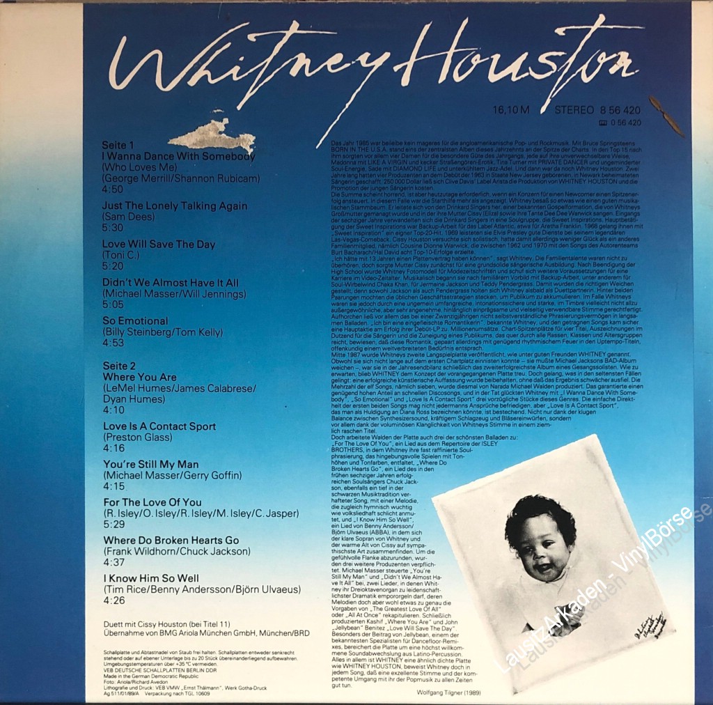 Hallo liebe Vinyl-Freunde,wir bieten euch hier ein paar Stücke aus unserem Plattenladen an. Es handelt sich dabei ausschließlich um Originalware bekannter Label aus den 60er, 70er und 80er Jahren. LP - Amiga ( 856420 ) - Whitney Houston - Whitney Klicken Sie auf das Bild um das Cover mit der Titelü ...Weiterlesen