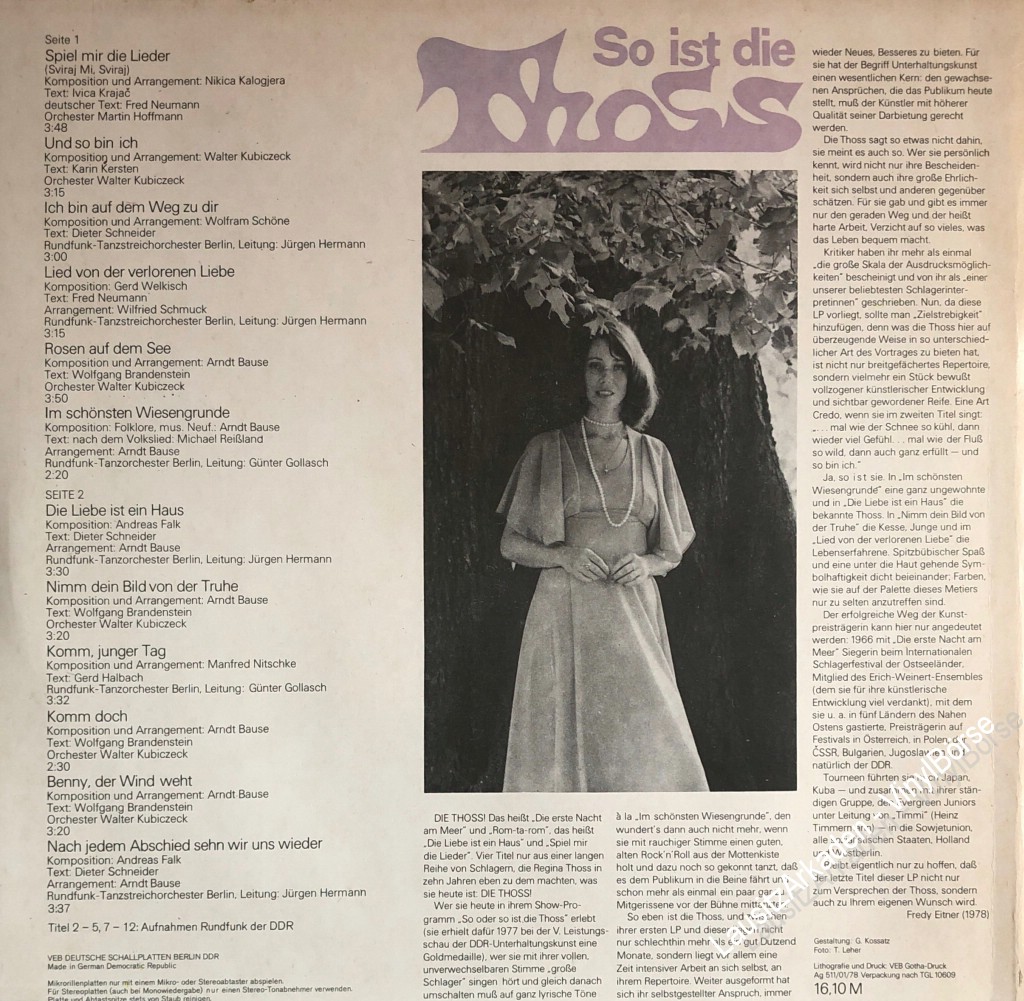 Hallo liebe Vinyl-Freunde,wir bieten euch hier ein paar Stücke aus unserem Plattenladen an. Es handelt sich dabei ausschließlich um Originalware bekannter Label aus den 60er, 70er und 80er Jahren. LP - Amiga ( 855610 ) - Regina Thoss - So ist die ThossKlicken Sie auf das Bild um das Cover mit der T ...Weiterlesen