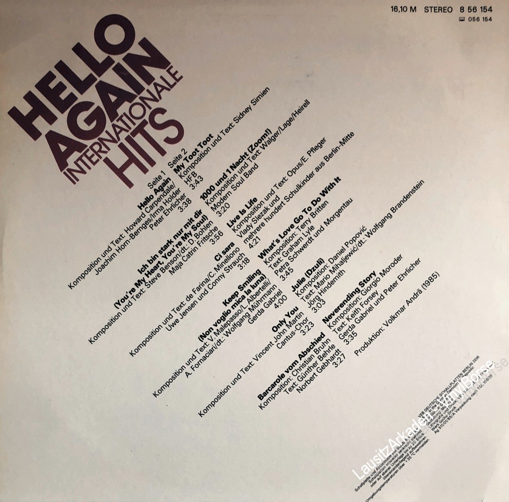 Hello Again - Internationale Hits - Amiga - LP 330010518