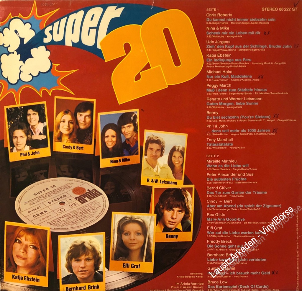 Hallo liebe Vinyl-Freunde,wir bieten euch hier ein paar Stücke aus unserem Plattenladen an. Es handelt sich dabei ausschließlich um Originalware bekannter Label aus den 60er, 70er und 80er Jahren. LP - ariola ( 88222GT ) - Super 20Klicken Sie auf das Bild um das Cover mit der Titelübersicht in hohe ...Weiterlesen