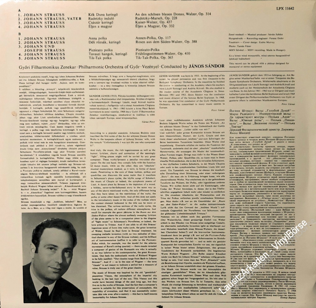 Hallo liebe Vinyl-Freunde,wir bieten euch hier ein paar Stücke aus unserem Plattenladen an. Es handelt sich dabei ausschließlich um Originalware bekannter Label aus den 60er, 70er und 80er Jahren. LP - Hungaroton ( LPX11642 ) - Johann Strauß - Waltzes and PolkasKlicken Sie auf das Bild um das Cover ...Weiterlesen