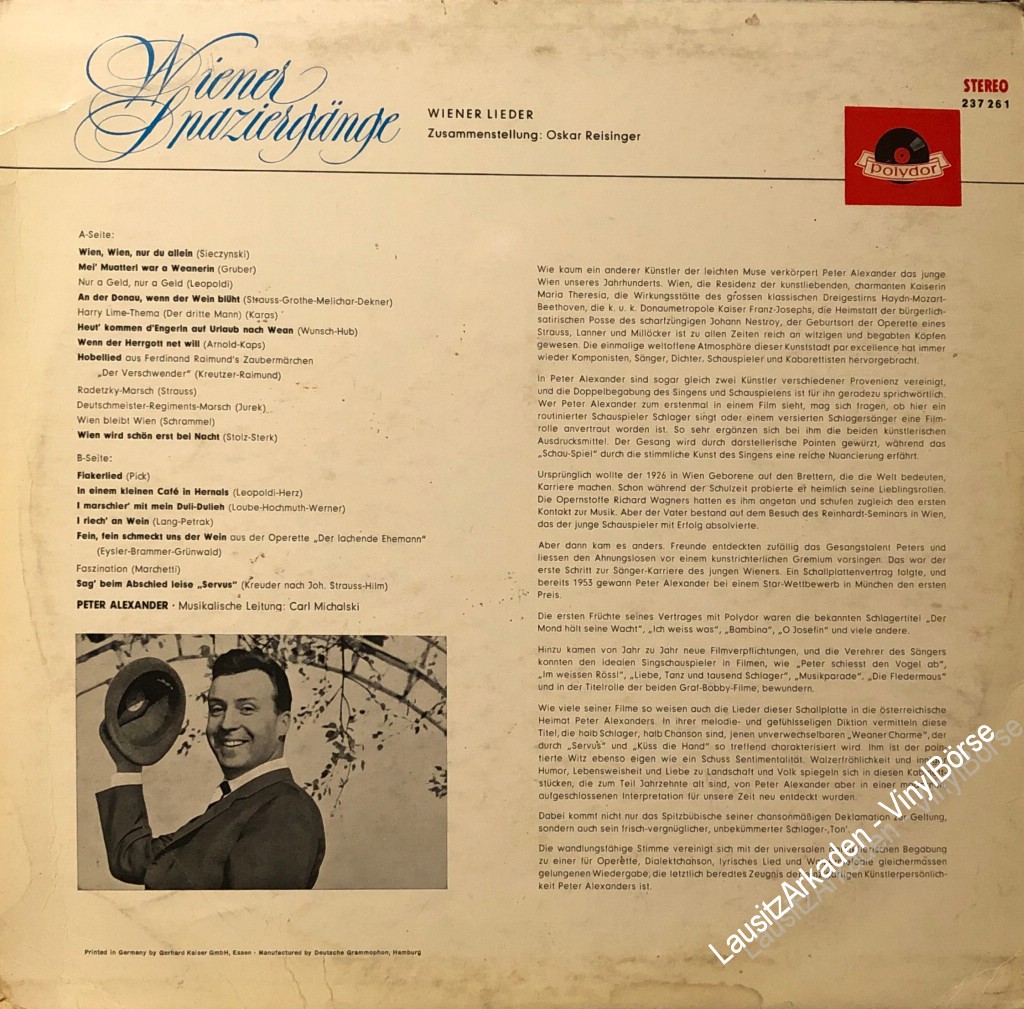 LP - Polydor ( 237261 ) - Peter Alexander - Wiener Spaziergänge