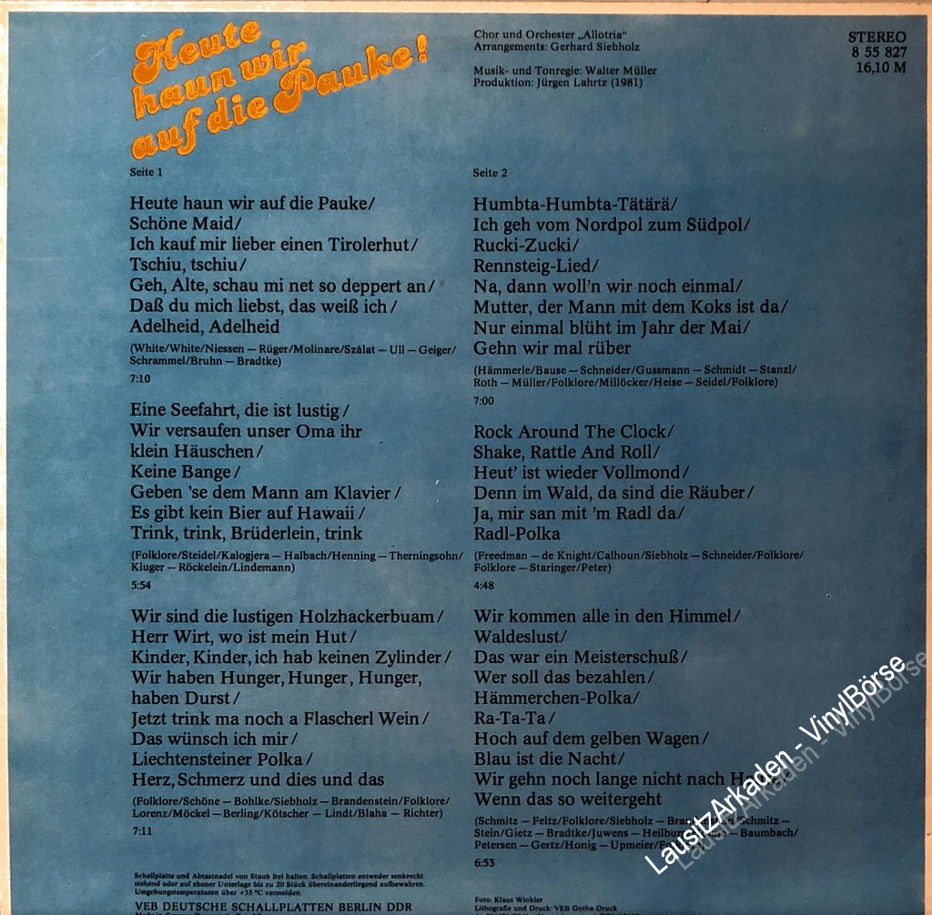 Hallo liebe Vinyl-Freunde,wir bieten euch hier ein paar Stücke aus unserem Plattenladen an. Es handelt sich dabei ausschließlich um Originalware bekannter Label aus den 60er, 70er und 80er Jahren. LP - Amiga ( 855827 ) - Heute haun wir auf die PaukeKlicken Sie auf das Bild um das Cover mit der Tite ...Weiterlesen