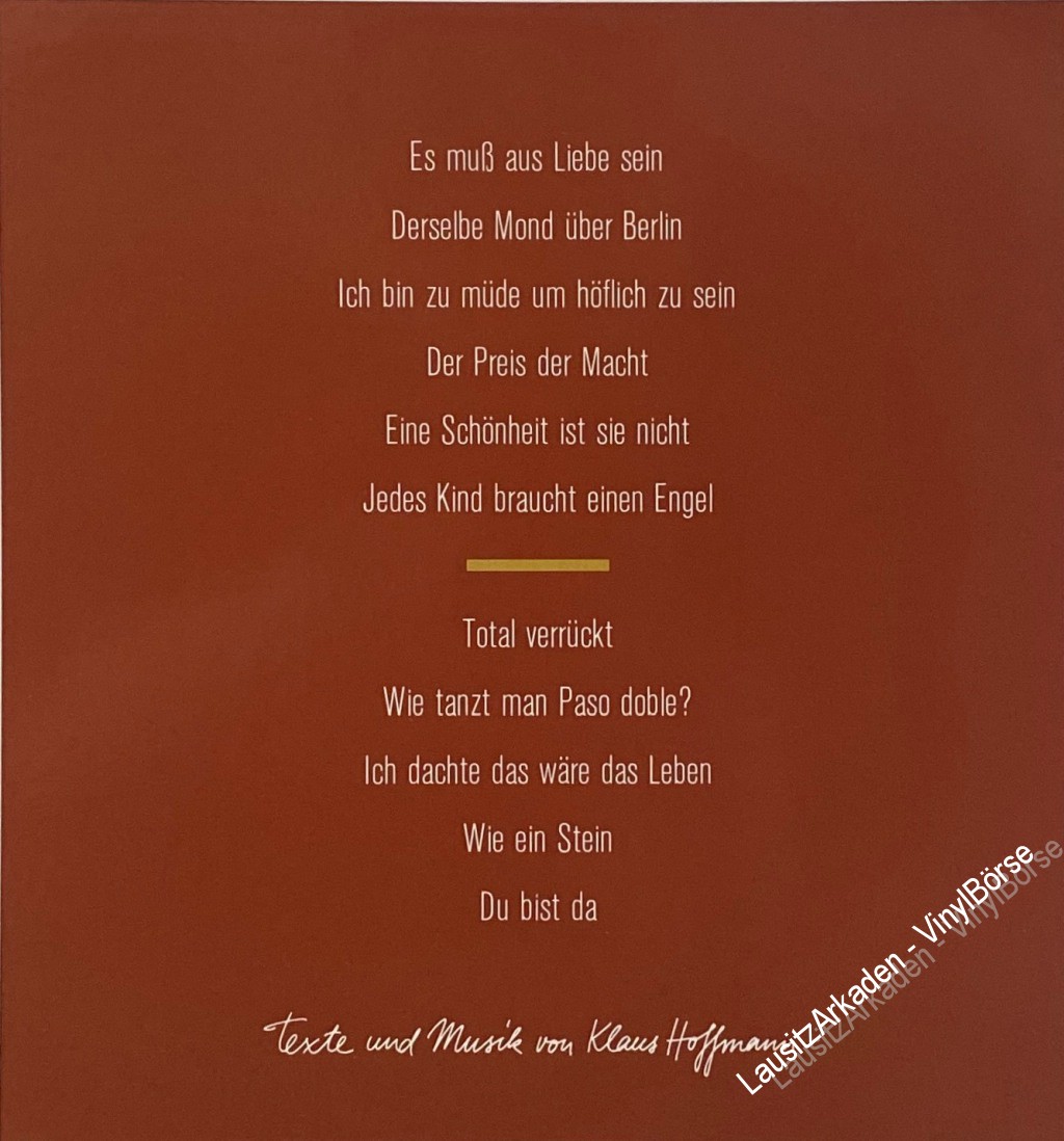 LP - Virgin ( 209830-630 ) - Klaus Hoffmann - Es muss aus Liebe sein