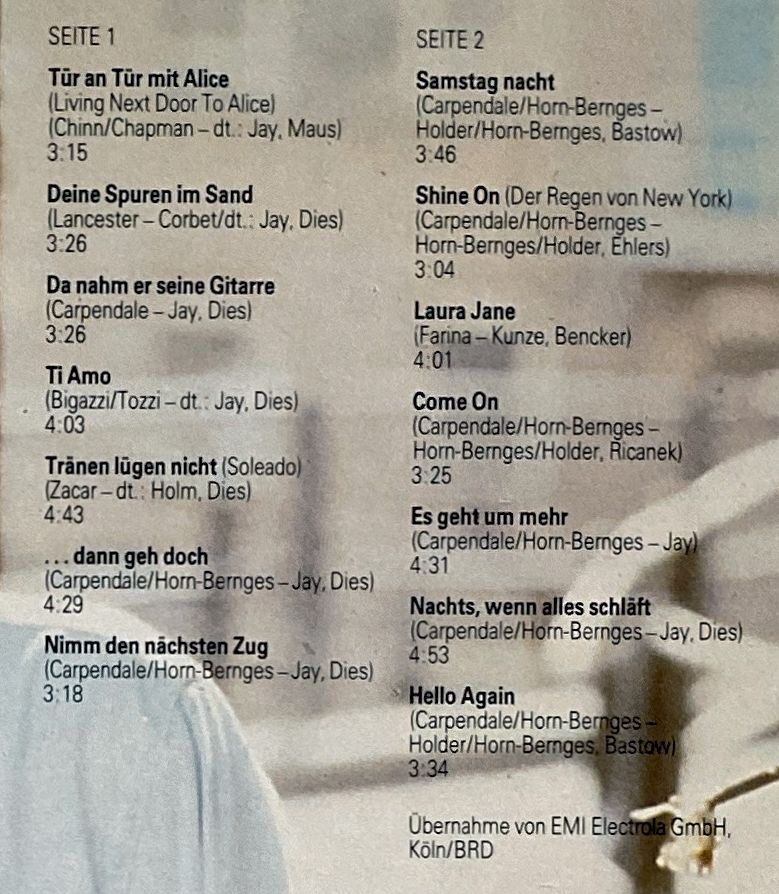 Hallo liebe Vinyl-Freunde,wir bieten euch hier ein paar Stücke aus unserem Plattenladen an. Es handelt sich dabei ausschließlich um Originalware bekannter Label aus den 60er, 70er und 80er Jahren. LP - Amiga ( 856427 ) - Howard Carpendale - CarpendaleKlicken Sie auf das Bild um das Cover mit der Ti ...Weiterlesen