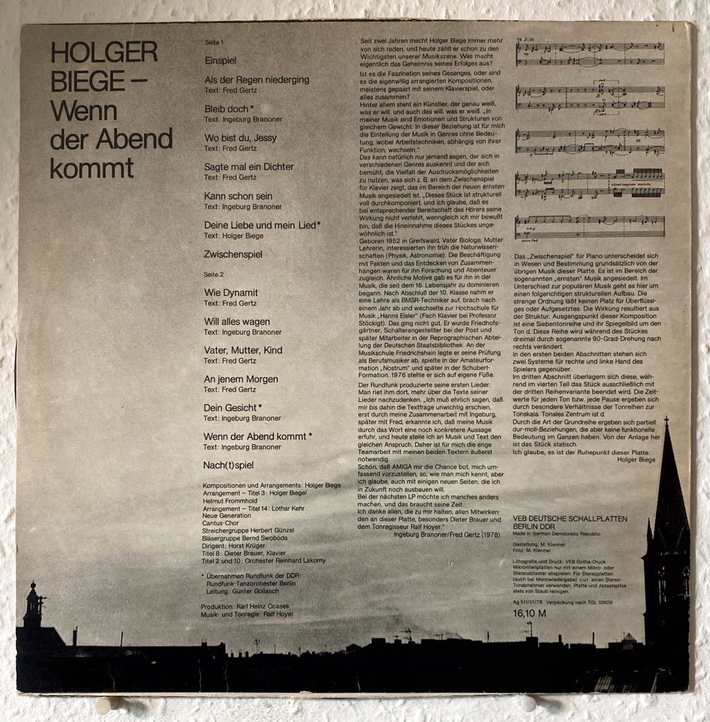 Holger Biege - Wenn der Abend kommt - Amiga - LP 330011435