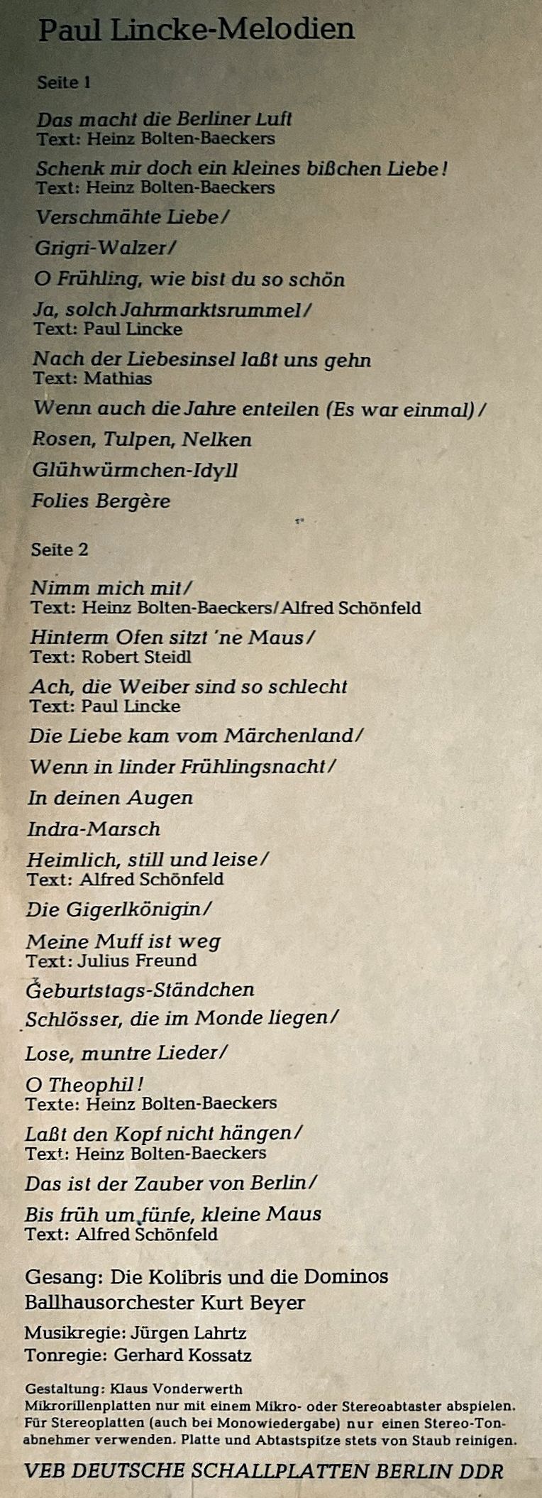 Der Zustand der Platten ist Gut bis Sehr Gut.
