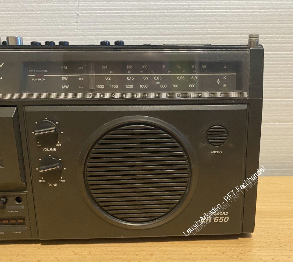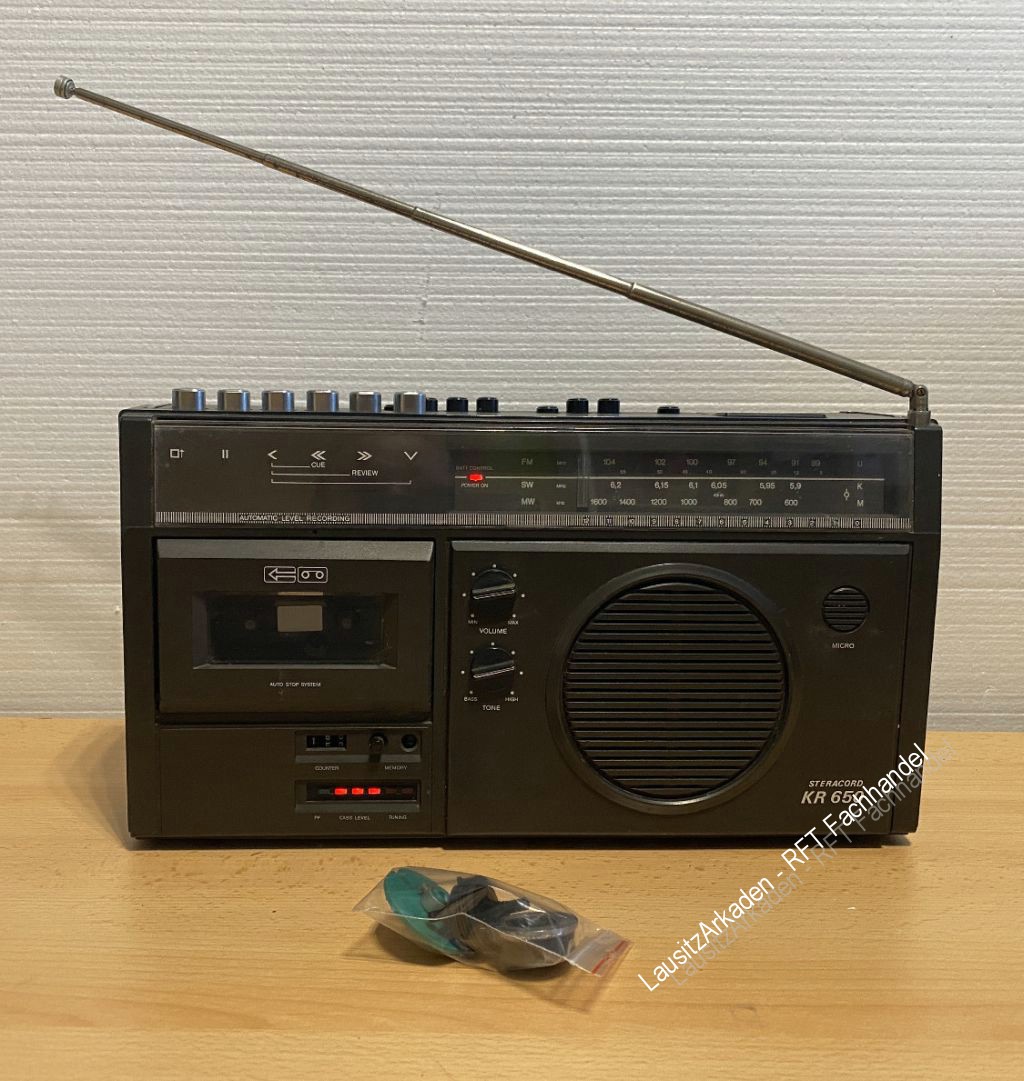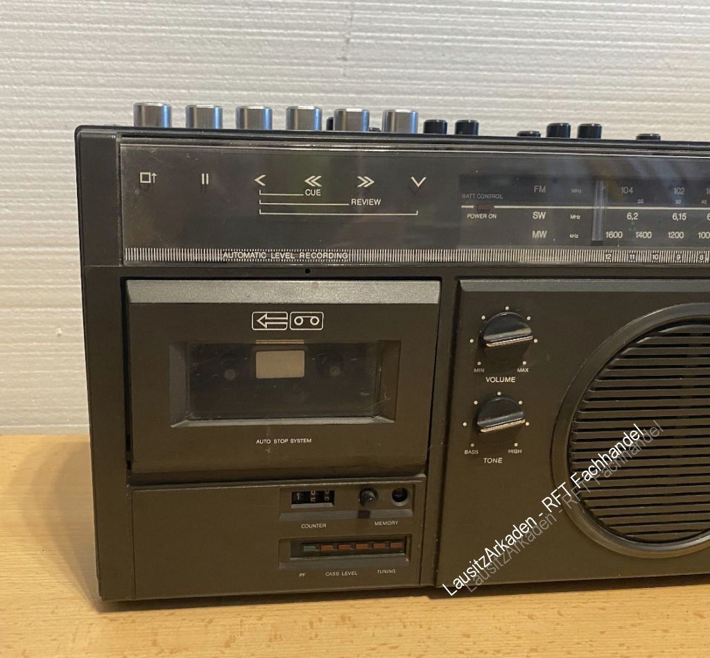 | Kassettenfunktion (Wiedergabe) getestet. Radiofunktion kann nicht getestet werden. Abstimmknopf ist abgebrochen und muss gewchselt werden. Ein Ersatzteil (gebraucht) wird mitgeliefert. Antenne intakt. Optisch mit Gebrauchsspuren (siehe Bilder). |