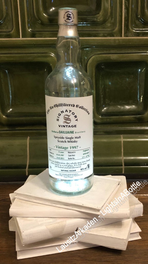 Whiskyflasche - The Un-Chilllfiltred Collection Dailuaine - klar: Korken mit LED-Lichtern (USB) - grün - Mit Tubus